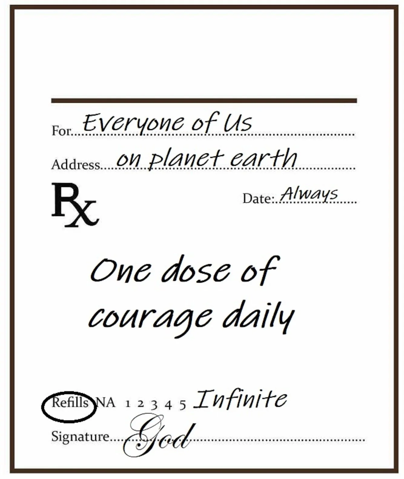 Courage is also developed the same way. It starts in little bits, asking the pastor questions, speaking to others about your faith and finding out how it helps to know God in those times of challenge.
